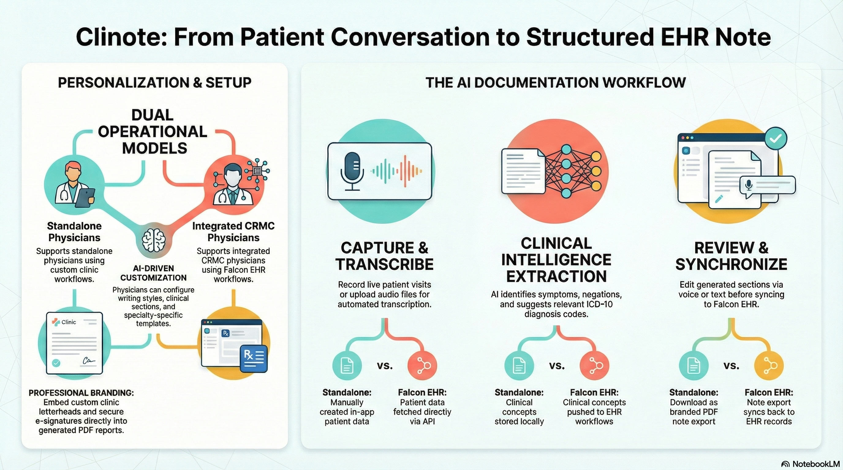 Seamless Integration: For CRMC physicians, Clinote integrates directly with Falcon EHR, allowing for real-time syncing of patient lists and reports.
