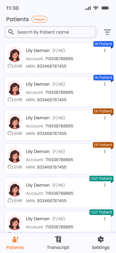 | Falcon EHR | Patients are pulled from a connected EHR system. Sync to EHR is available. |