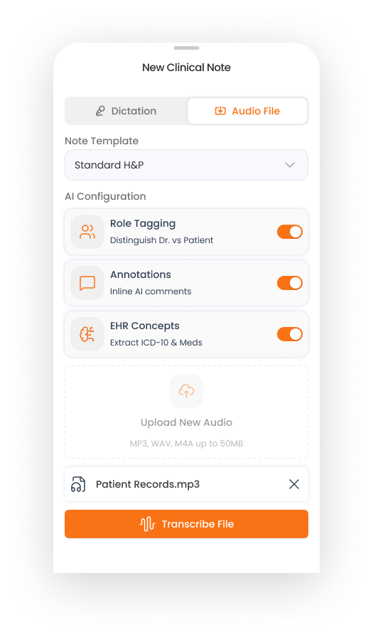 Q: My audio recording fails to upload. A: Check your internet connection and try again. Ensure the audio file is under the 50 MB size limit. Supported formats are MP3, WAV, and M4A.