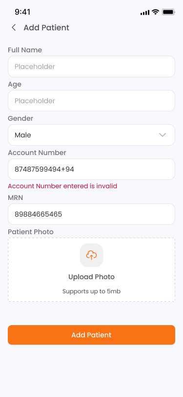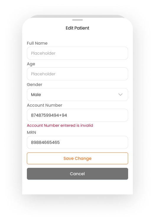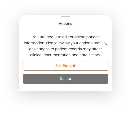 - Tap the three-dot menu (...) on a patient card to access Edit or Delete.