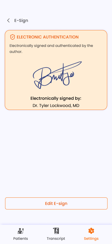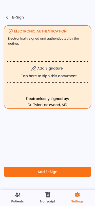 - Once signed, the note displays an E-Signed badge. This action is permanent and cannot be undone.