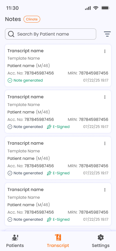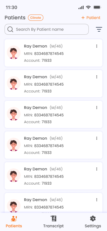 Once assigned, these patients become available in Clinote for note creation and syncing.