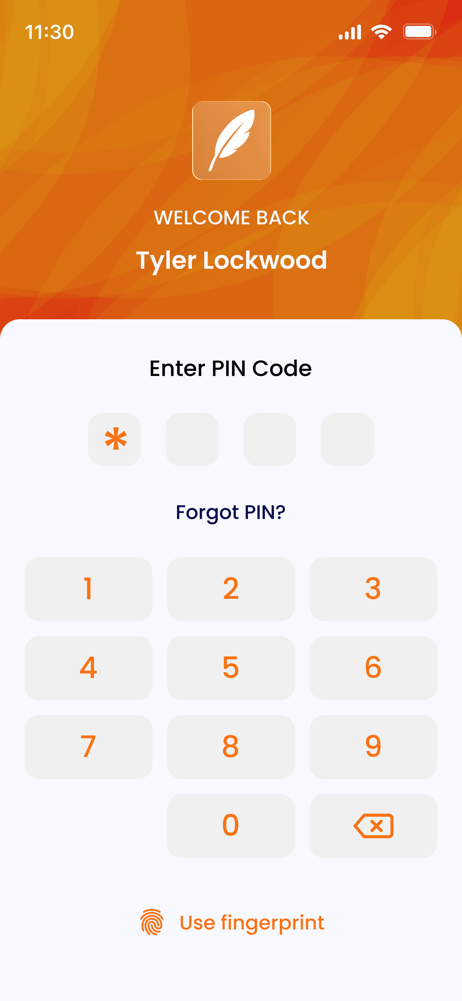 - If this is your first login, you will be prompted to set up app security (PIN and/or biometrics).
