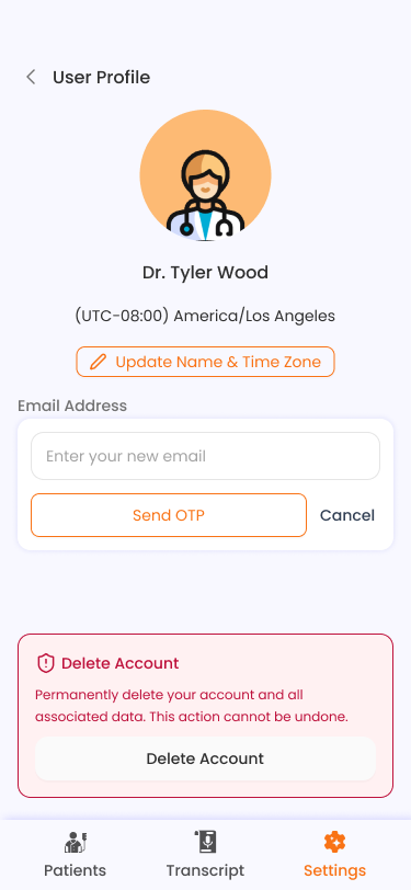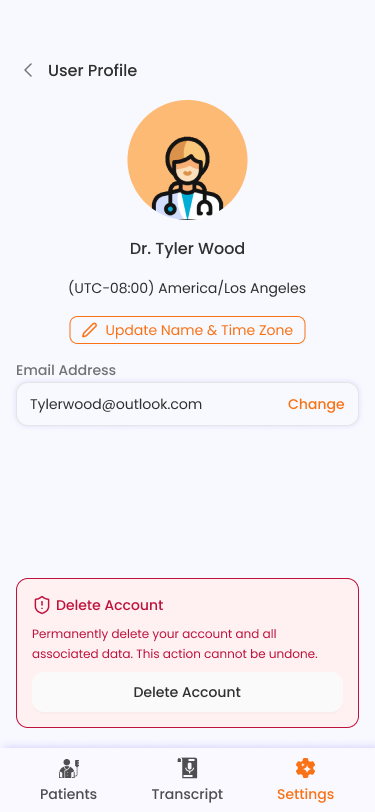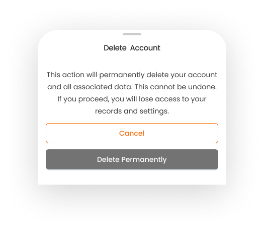 - Delete Account: A permanent action. You will be asked to confirm before your account is removed.