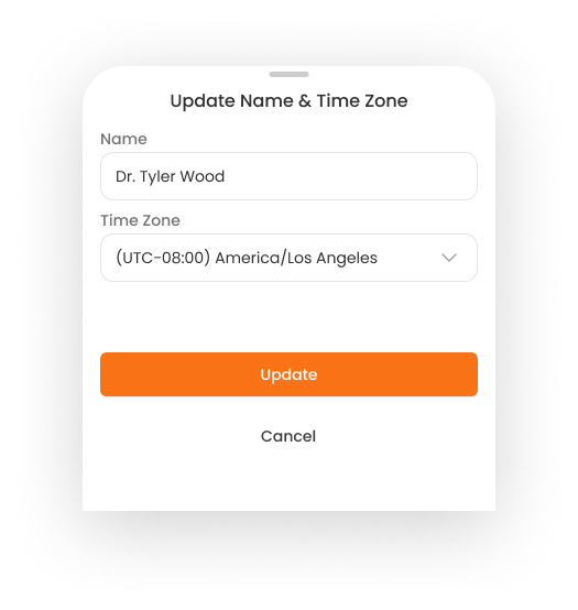 - Update Name & Timezone: Tap the update button to edit your display name and timezone.