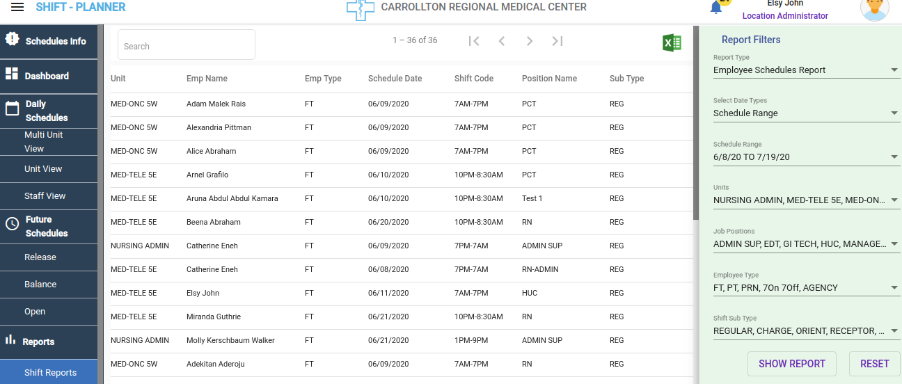 - The Shift Planner imports all Nursing Department staff details from the HRMS Application.